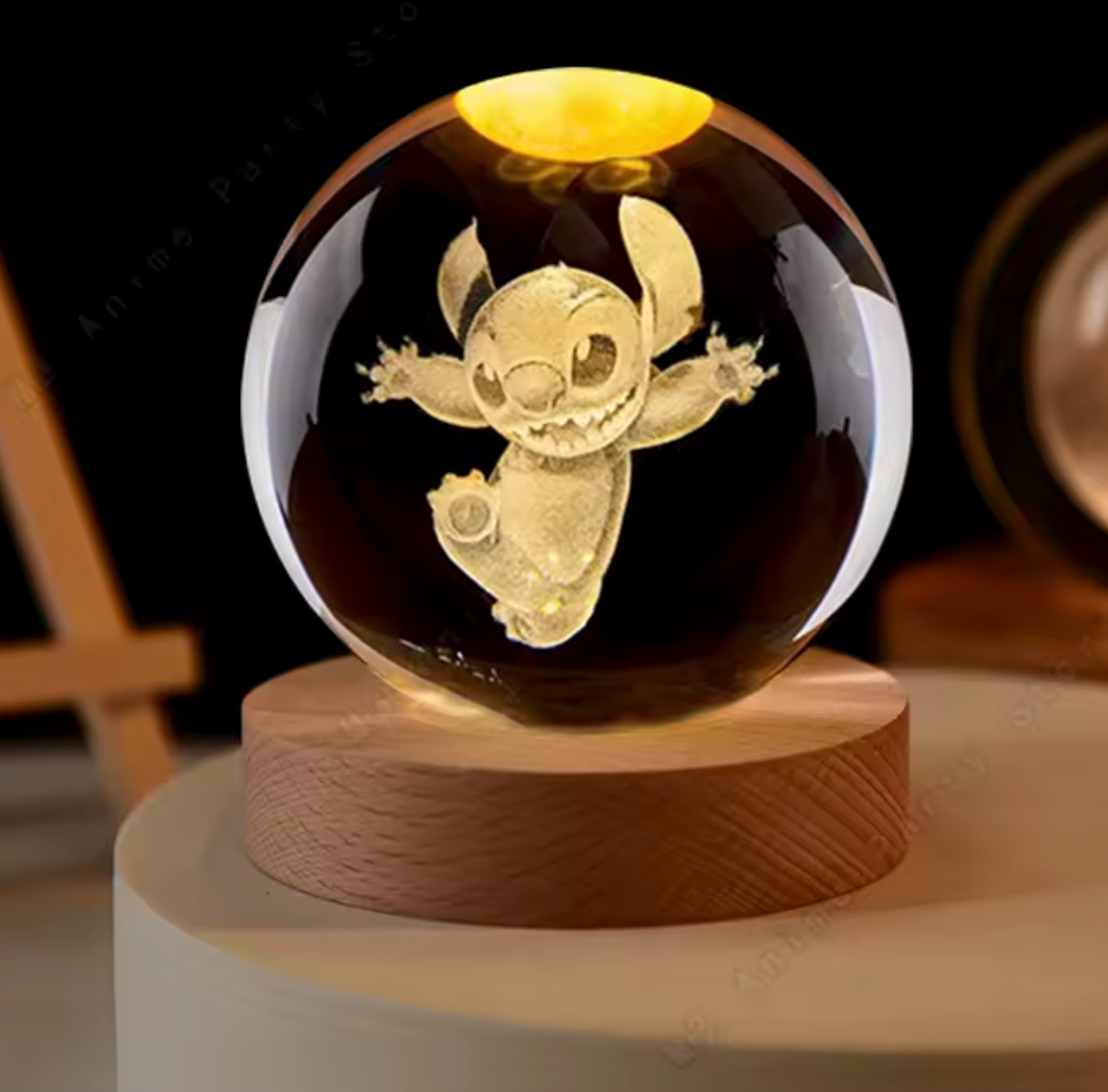 - Fantastica sfera di cristallo con riproduzione del personaggio cartone animato Stitch di Lilo in 3D con stampa laser, rappresenta una smorfia del personaggio. Ideale per arredare la vostra casa o come luce notturna per bambini