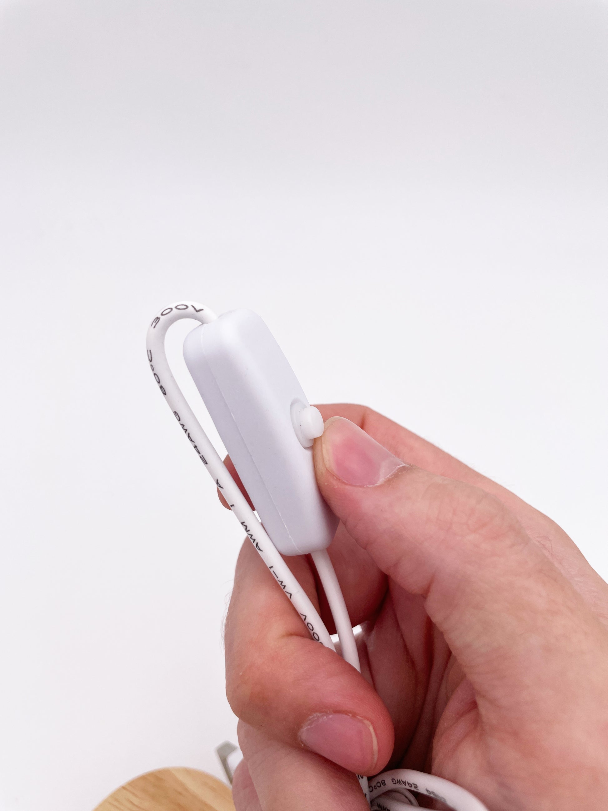 - La basetta è fornita di un cavo USB da collegare a qualsiasi porta o alimentatore USB, con interruttore per spegnere e accendere quando si vuole